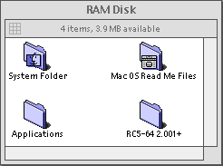 あとちょっとしたテクニックとしては、マックの弱点としてファイルシステムの弱さがあげられます。今回のようにHDDアクセスが多いといくらPowerPCでも辛い場合が多々ありまして、特に1G位迄の小さな遅いモノを積んでいると顕著です。蒼騎の場合最初は普通にHDDから起動していたのですが、20MBくらいのRAM Diskを作成して、Mac OS8(E)をカスタムインストールで、Core System+OpenTransportのシステムをインストールしました。これですと15.9MBのシステムフォルダができ上がり、RC5-64 Clientを入れてもばっちりです。このシステムで起動しますと、遅いHDD程これでスピードアップがはかれますのでお試しください。