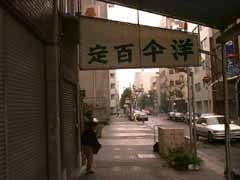 信号のない交差点を左折すると、こんな光景。ますます問屋街っぽい雰囲気だけど、本当に問屋街だからしょうがない。ますますマックの専門店があるのか不安になったりするかもしれないけど、ここまできたらシトラスさんは、すぐそこ。あと10mくらい、おばさんの立ってるすぐ向うにシトラスビルヂングが立っている。 |