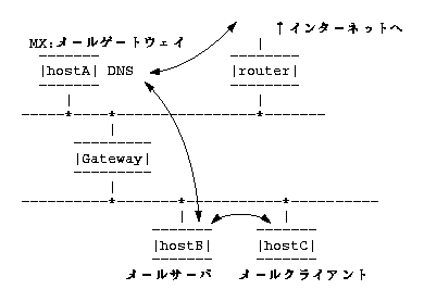 よう。hostB は内部ネットのメ−ルクライアントの hostC などに配送する。 hostC が外