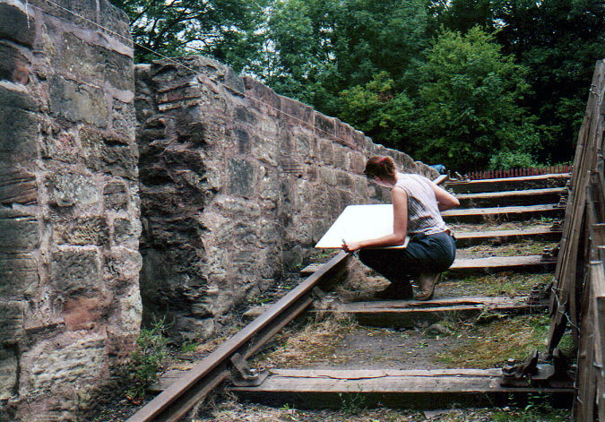 ここで、めずらしい風景に出会った。熱心にレンガのインクラインの遺構を調査している若き女性の産業考古学徒がいた。水平に基準となる糸を張って、遺構のレンガをひとつひとつ丹念に図面化しているのである。産業考古学研究の模範である。 この例を考えてみれば技術史の研究課題と教材は私たちの身近にいくらでもあるようだ。本物の遺構・遺物に直接触れてみること、そこから体験的に学ぶことは大変意義あることではいか。(中部産業遺産研究会事務局長、豊橋工業高校教諭・石田正治)
