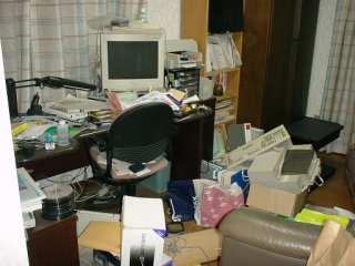 家を新築しました。1997年末引っ越ししました。2000年になっても,自分の部屋は引っ越しした荷物がそのまま散乱している状態です(涙)…