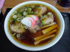 で,実際出てきたラーメンは普通のラーメンでもチャーシューがてんこ盛り。分厚いのが4枚。まろやかなあっさりしょうゆやや濃い口のスープとそのスープがいい感じにからむ麺,そしてチャーシューを頂きました。