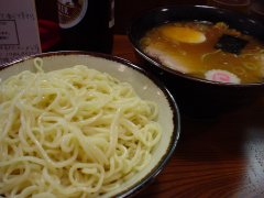 スープは鶏,豚,節類,煮干し,根菜類を煮込んだ系統だそうで,十分素材の味を出し切っています。それでいて重さを感じさせない飽きの来ない味わいです。提供時に寸胴から雪平鍋に入れて加熱し,あつあつを出してもらえます。麺は太麺でドドーン,ツルツルちゅるん!!という豪快な食感を楽しめます。量は通常のラーメンの2倍はあり!!食後はもうお腹いっぱ〜い,でも苦しさを感じさせません。自分の胃がこんなにたくさんの食物を受け付けるなんて,ちょっとびっくりしてしまいます。自分的につけめんはいつも,とりあえずは何も付けずに麺を1〜2すすりして,その後からラストまではスープに付けて食べるということをしてます。特に意味はないですけど麺そのものを味わってみたいということです。