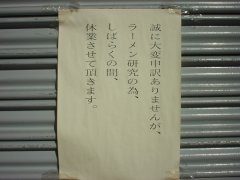 毎回味が変わるたびにいろいろ話をしていますが,なかなか研究熱心な方でこんどは博多までいって本場の博多ラーメンを堪能してきたいとおっしゃってました。営業時間は昼と夜やっていますが,あまりにも研究熱心のためか,スープ調整のために,最近はほとんど店を開けていません(^^;。早くまた食べたいよー。