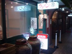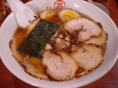 この店も超繁盛店なのですが,私が行ったときは天候が悪かったせいか並んではいなかったです。薫製の技法をラーメンに取り入れているのがこの店の特徴です。チャーシューや卵を薫製にしてそれをラーメンに使っているのです。このチャーシューとスープの相性はさすが。麺は加水率ややひくめでスープをよく絡めます。スープは魚系の出汁が利いていて,武蔵@新宿を連想させますが(店主は武蔵で修行していたそうです),さらに一ひねりしたという感じ。舌先2/3で味を感じ,そのあとですっと後を引く何ともいえない感覚のスープです。煮干しの風味が程良く漂う「ふつう」,とんこつの比率を高めた若者向けの「こってり」の2つのスープが選べます。ラーメン全体としての印象は,それぞれの素材は暴走しがちで個性的な物が組み合わされているのですが,うまくストッパーが効いていて,ラーメンという料理にまとまっているなと思いました。