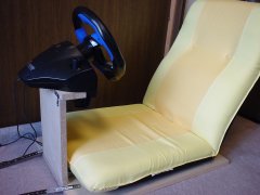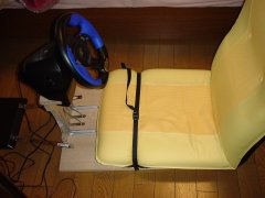 図のような格好でステアリングコントローラを膝の間に挟んで,