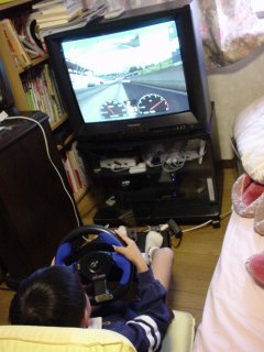 という格好で20分ぐらいゲームをしたが,やはりステアリングが固定されて