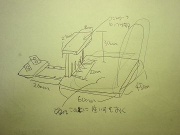 | (1) ペダル位置調整 ペダル位置を前後左右に調節できるようにする。現在のペダル位置は左足ブレーキが前提。右足ブレーキも可能としたい。 (2) カラーリング (3) ハンドルコントローラ高さ調整 |