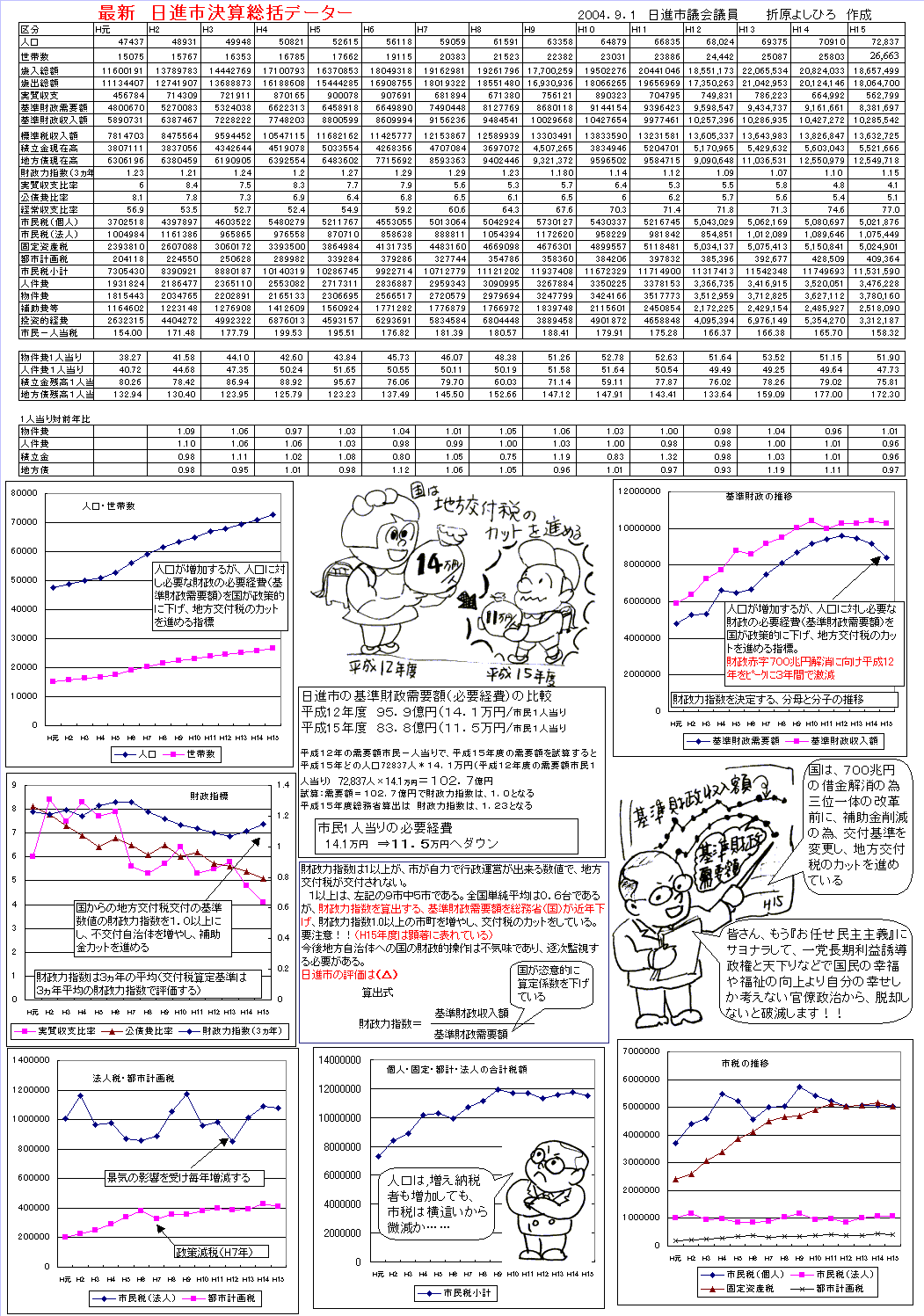 2004年(平成15年度日進市決算データ) 2004年9月12日掲載