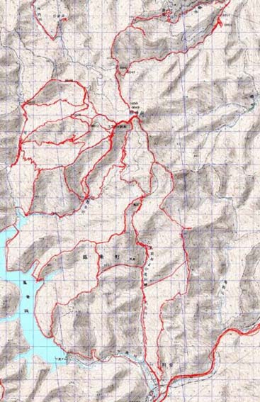 帰路は直登を下り400M辺りでの堰堤横に出るコースを草刈りしながら下りた。