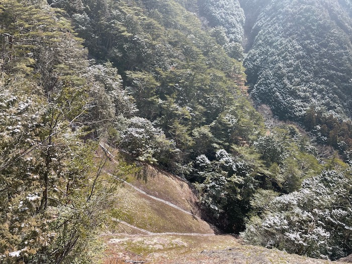 西峰までは今回も強冷風。下り始めると一気に穏やかになる。