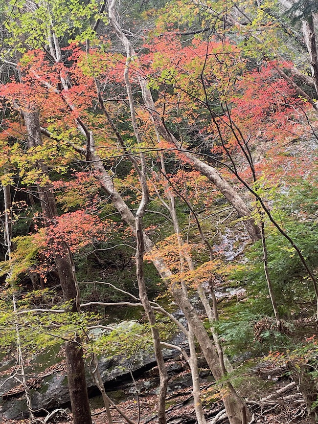 肩からスズガタ林道に降りて下降点から谷へと下り紅葉鑑賞。これでお終いの感じだった。