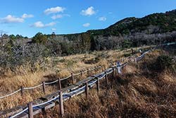 | このページは、特に花の見られるシーズン(3〜12月)は随時 up-to-dateな情報を発信し、現在見られる葦毛湿原の様子を紹介します。 文中の「散策路図」は、こちらをご覧ください。 このページの画像は全て、取材当日にデジタルカメラで撮影したものです。 なお、このページではラン科の植物については特定のものを除いて、あえて掲載しないようにしています。 (2026/01/02の湿原風景) |