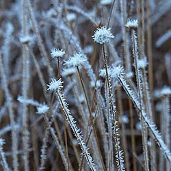 シラタマホシクサが霜で輝いていました。