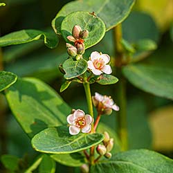 ●湿原内では、ミズオトギリ、ムカゴニンジン、ミカヅキグサ、ヒメシロネなどが咲いています。