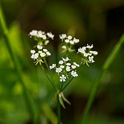 「散策路図」の19番付近では、ムカゴニンジンが咲き始めました。 |