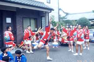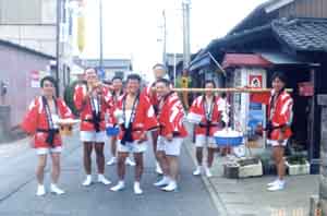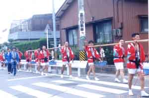 On the day of the festival we carry goods for shrine and walk around our home town. |