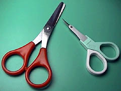 ハサミもボークスとかでドール専用も売ってるみたいだけど、蒼騎は使い慣れた100円くらいのハサミ。いつも使ってるので、使いやすい。先のまがったやつが良いとか云う話も聞くけど、蒼騎は失敗した。よって使っていない。しかし、気に入らない髪の毛一本をカットするのには向いているので、最終的な仕上を行うときには一つ持っていると良いかも知れない。100円ショップで売っている。一応、紙用のハサミで、ゾーリンゲンとかも持ってるけど、ドールの植毛を切るのには向いていないようだ。もしかしたら、散髪用のハサミを買ってくるのが一番かも知れない。 |