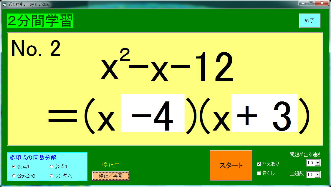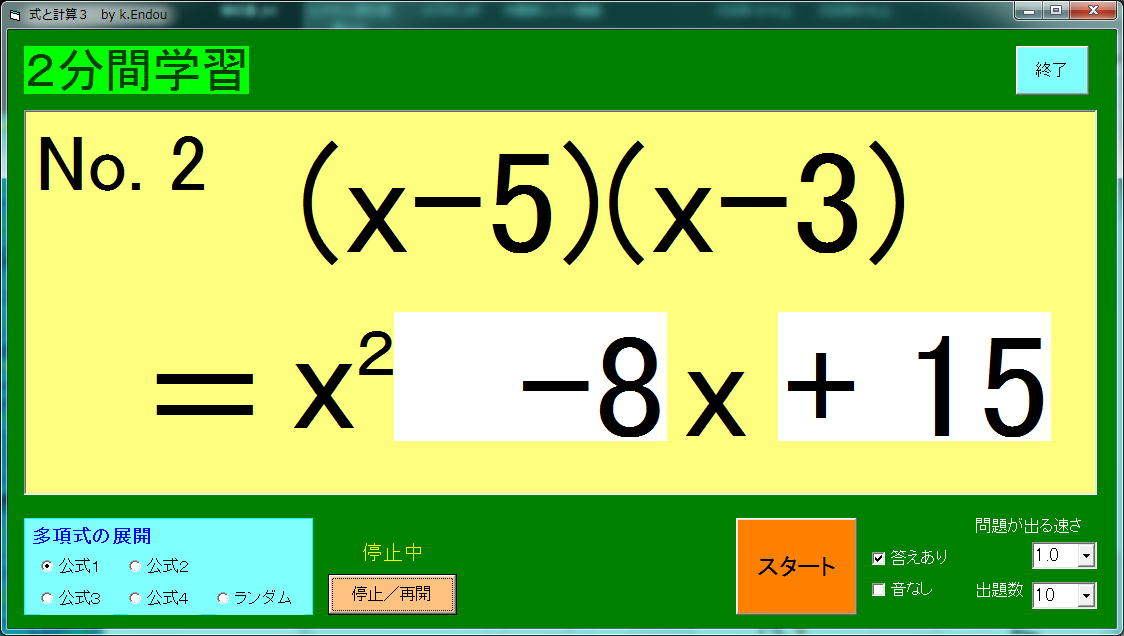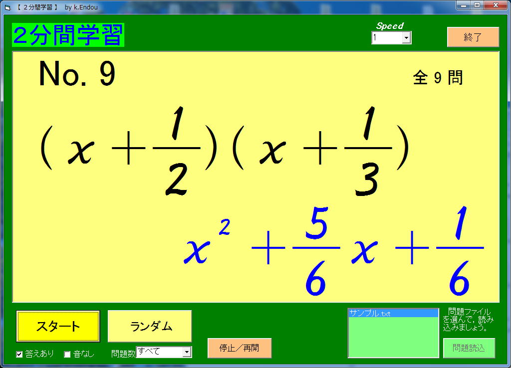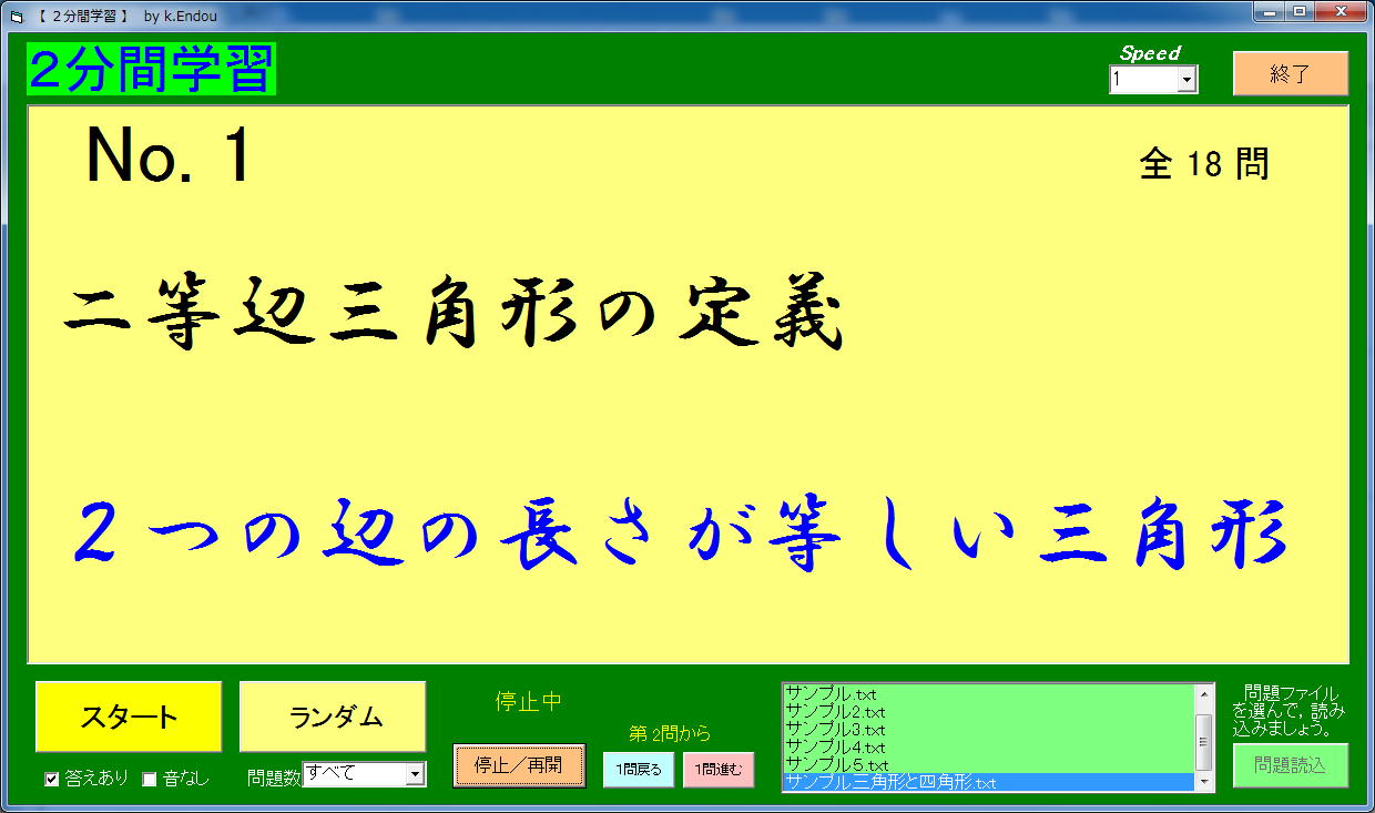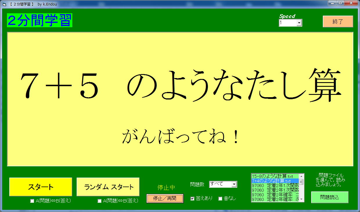 (修正)「停止・再開」ボタンを押しても、解答が表示されてしまう不都合を直しました。(H30)