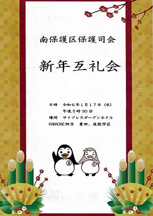 | 令和6年1月17日午後5時30分からサイプレスガーデンホテルにおいて, 保護司、来賓各位45名が参加し新年互礼会が行われました。 | ||