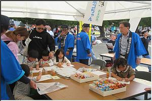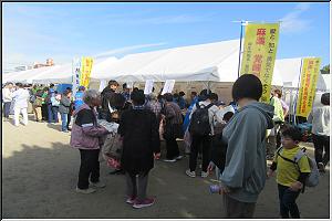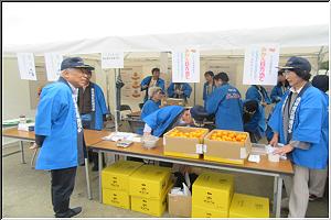 | オープン前の保護司会ブース | みかん目方当て | 薬物乱用防止クイズの列 |