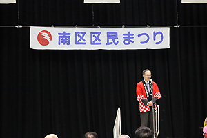 | 開会のあいさつ(作田宏幸 南区長) | 更生保護ペンギン ホゴちゃん | みかん目方当て |