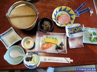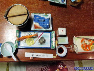 上の写真は夕食(18:00〜17:30)。アワビのバター焼きや深海魚など珍しいものもあり楽しめました。