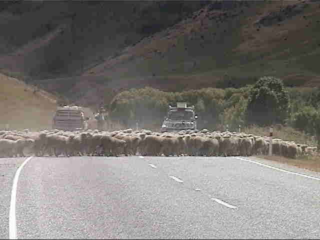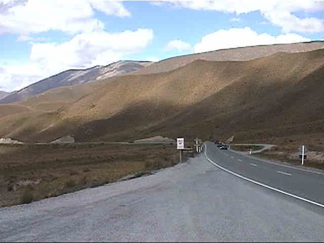 受け一丘超えてLindis Valleyに、ここで羊の道路横断で3分程度の休憩。