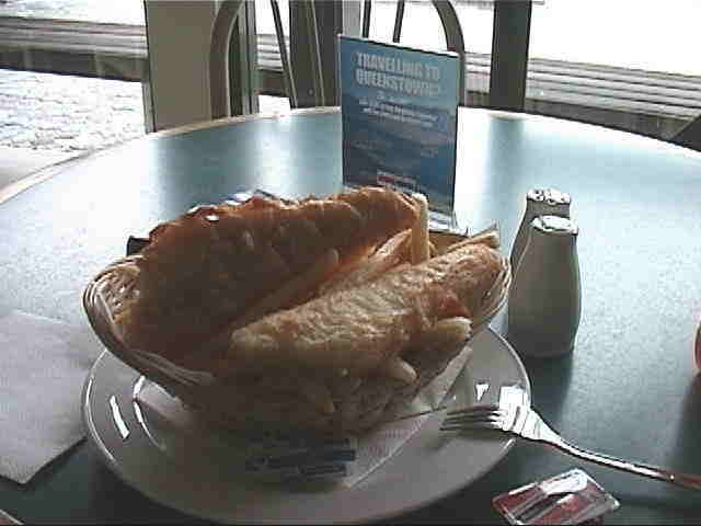 昼食。昼食にフィッシュ&チップスを注文、Omaramaで同じものを食べたら5$