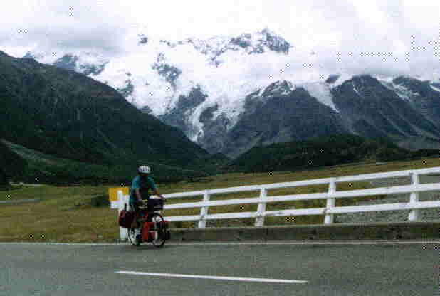 める。分岐から35km地点、LakePukakiに流れ込むTasmanRiverが見えた