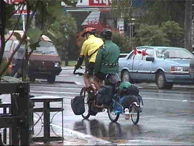 (南島1周のカップルサイクリスト。なんとタンデムにトレーラー)