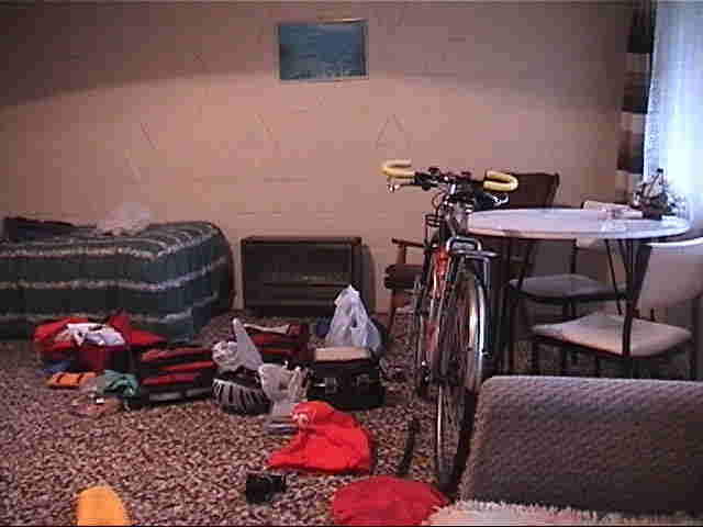 (20畳ぐらいある広いmotelの部屋にて、ここが日本円で1人一泊3000円ぐらい)