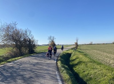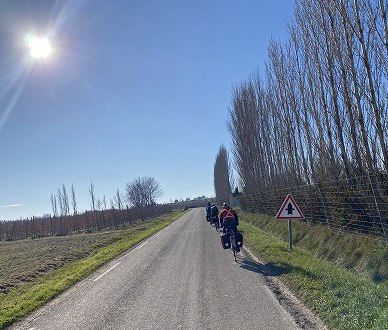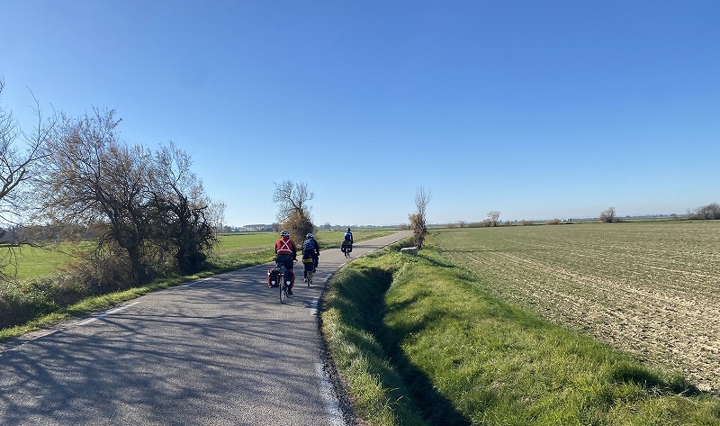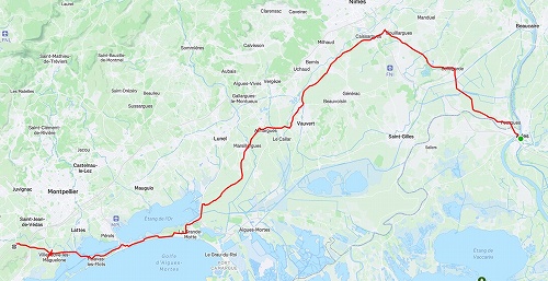 アルルを日の出とともに8時半出発。まずはニーム方面に25km進みます。