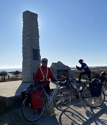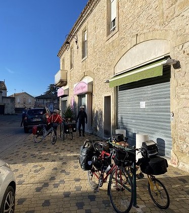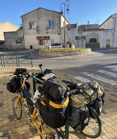 下り基調で気持ちよく走るともに、途中オーボールの街によって中心部の広場で見つけたカフェで