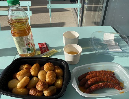 (このスーパー 総菜コーナーがあって暖かい食べ物をゲット!)