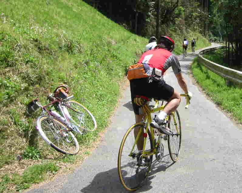 で休止する。休止後は足助・香嵐渓まで各自のペースで走行、ランドナーの平岩氏