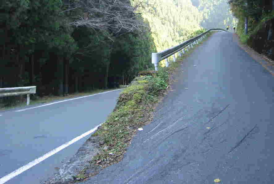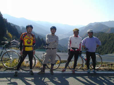 昼食後、記念写真を撮り出発。ホウジ峠からの下りは結構きつく狭いコーナーが多いので