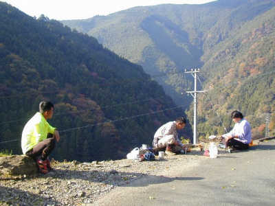 峠手前で、中央構造線が良くわかる展望の良いところで休憩。今日は風もなくここ数日では