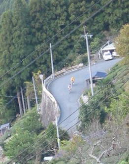 急坂にみなローギヤのペダリングとなる。ここで、再び市川さんのRメカが故障、アウター