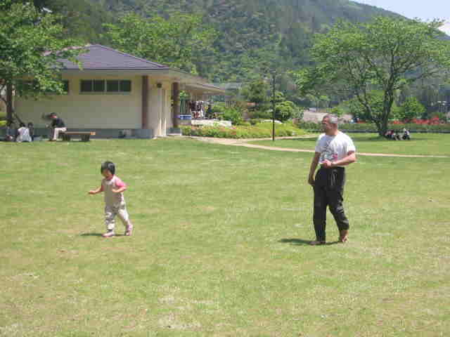 (道の駅「おくとろ」で遊ぶ我が娘) (本日唯一の上り坂)
