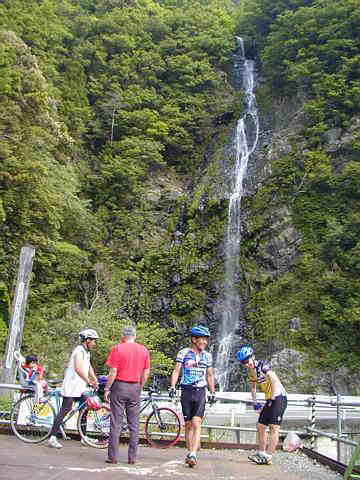 ろから二津野ダムに向けてじわりじわりとのぼりがきつくなる。ダム手前の道路わきの滝にて