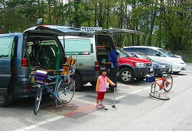 12時30分、4台のツーリングバイクと1台の子供乗せ自転車が出発、小熊黒沢林道の