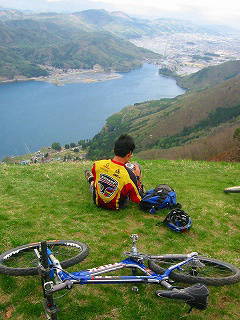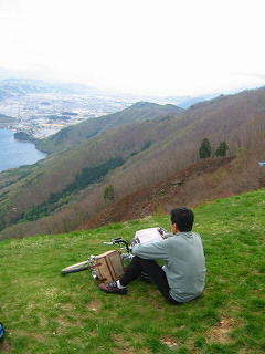 (小熊黒沢林道にて 木崎湖・大町市街を眺望できる)