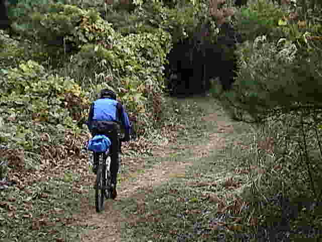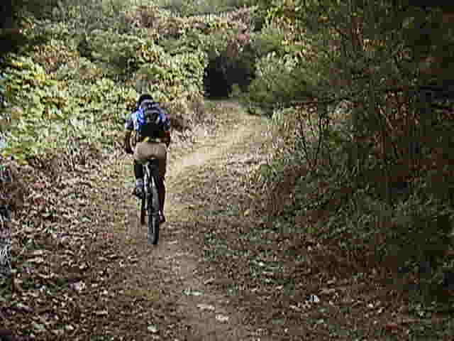 が、乗車可能なところも多く、楽しいシングルトラックを走る。途中、パラグライダーの離陸地も通っ