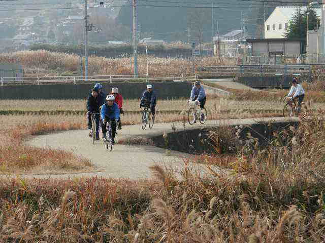 いのサイクリングロードのようなコースを軽快に走る。内原にて初瀬ダム周回組み・女寄峠