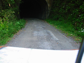 (二俣トンネル入り口) (トンネル通過後、道は簡易舗装が剥げた状態)