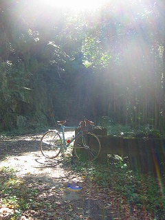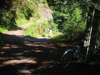 途中数箇所の側壁崩落により自転車を担ぎ上げなければならない箇所を通過すると川沿い