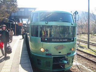 (特急「由布院の森」:しゃれた造りでした) (由布院の駅にて)