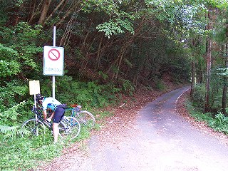 やがて、「この先通行止め」の看板があり、仏坂峠まであと数キロまで来たところで、道はあえな