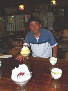 暑さと根性が切れたので撤退。湯谷のお土産やでおいしい氷を食べて今回のツーリングを終了